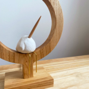 Une forme graphique minimaliste sublimée par une pointe de poésie, oiseau blanc qui est venu se poser là pour prendre le temps de contempler ce qui l’entoure.